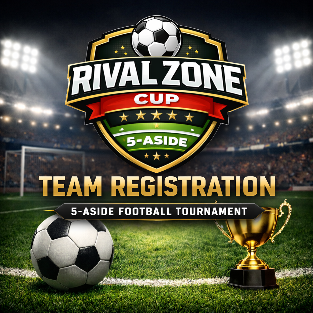 Official team registration for the Rival Zone Cup, a competitive 5-Aside football tournament played on standard artificial turf facilities.